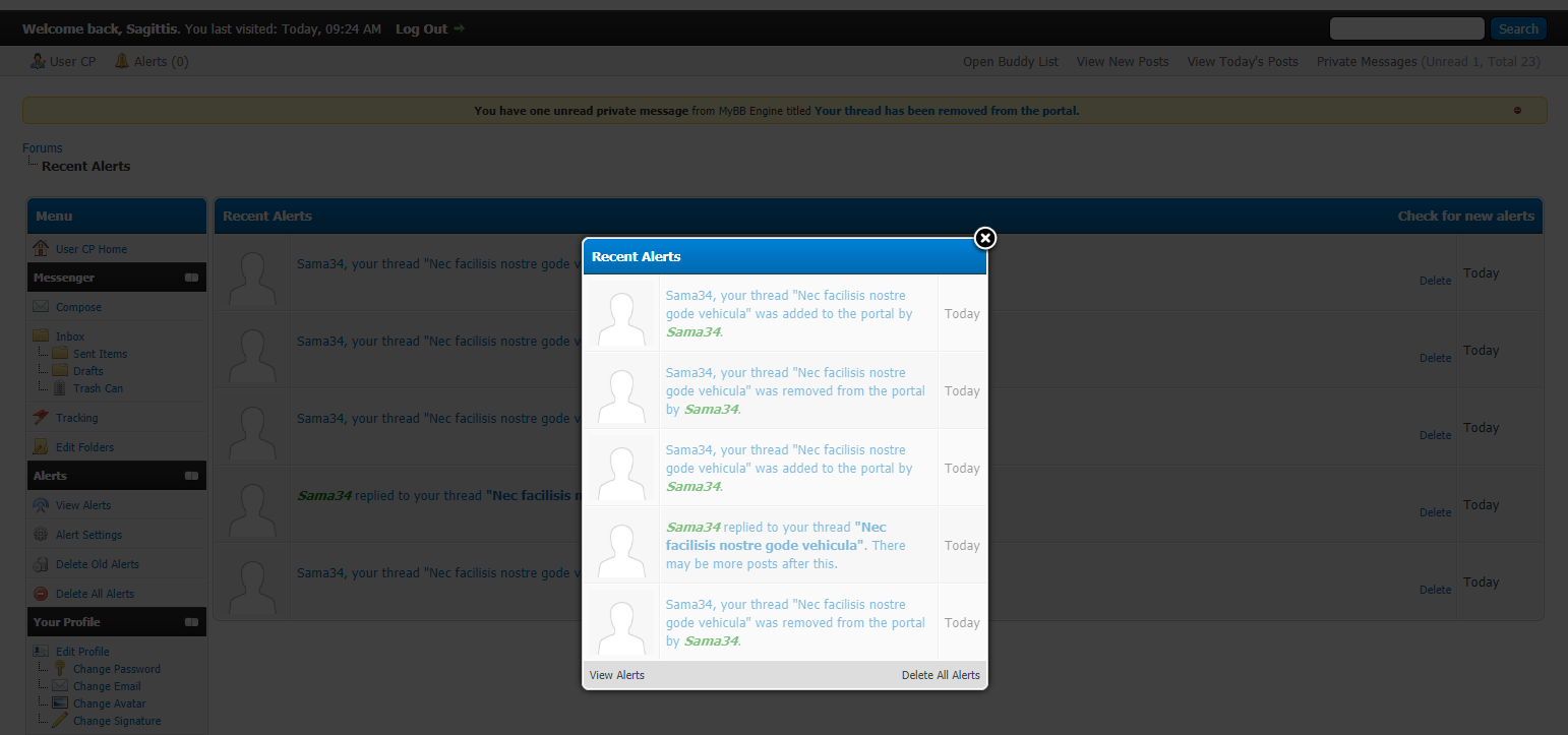 An essential tool empowering forum moderators with enhanced control over thread visibility in the portal landing page. This intuitive plugin allows specific moderator groups to easily mark threads for display in the portal. Users benefit from a 'read more' tag that links to the complete full thread to continue reading and participate in the discussion. Additionally, you will have the option to send private messages or MyAlerts notifications to thread authors, informing them about their thread's status on the portal. With added functionality to filter portal threads by forum and custom moderation tools, this plugin ensures efficient and effective thread management for a dynamic forum experience.
