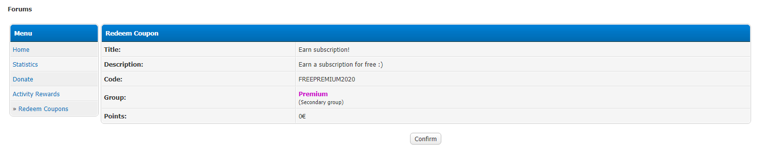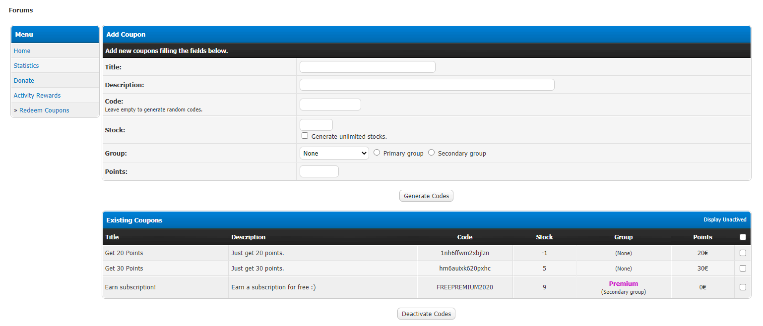Allow users to exchange coupon codes for points or memberships.